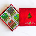 Regala para estas festividades de fin de año una deliciosa variedad de tés cosechados a mano en una linda caja navideña. Esta colección cuidadosamente seleccionada incluye el clásico té negro English Breakfast para comenzar el día con energía, el elegante té negro Earl Grey para darle un toque sofisticado, el té de Limón y Lima para darle un toque refrescante y el reconfortante té de menta para un final relajante.