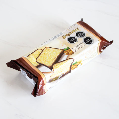 Queque con mazapán y cobertura de chocolate. Lo correcto para aquellos que no pueden obtener suficiente mazapán, horneados con una receta tradicional con buen gusto.